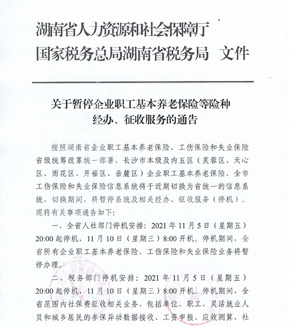 關于暫停企業(yè)職工基本養(yǎng)老保險等險種 經(jīng)辦、征收服務的通告